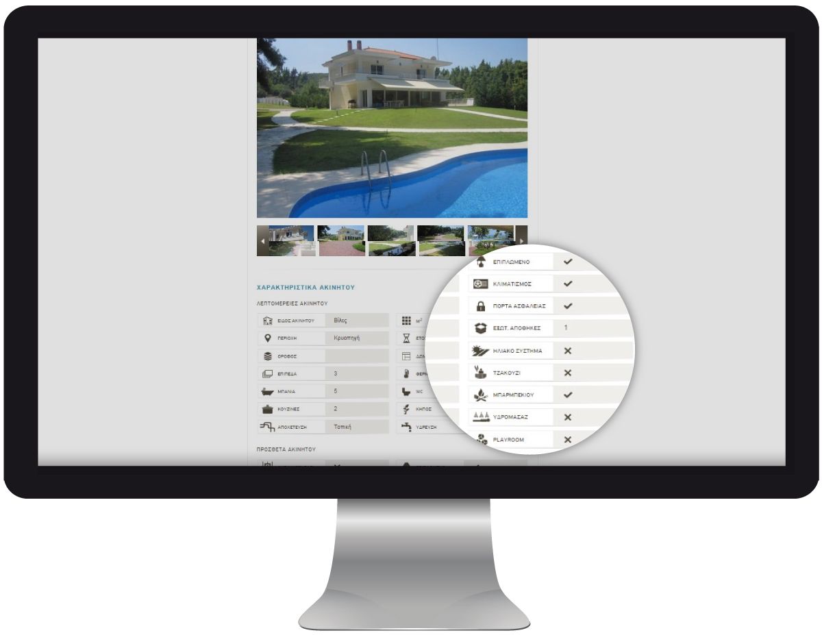 Μέσα από ένα ευχάριστο και σύγχρονο περιβάλλον και με τη βοήθεια της απόλυτα εξειδικευμένης μηχανής αναζήτησης μπορείτε να βρείτε εύκολα και γρήγορα το ακίνητο που ταιριάζει καλύτερα στις δικές σας ανάγκες. Δείτε το πλούσιο φωτογραφικό υλικό για κάθε ακίνητο και βρείτε όλες τις πληροφορίες που σας ενδιαφέρουν.