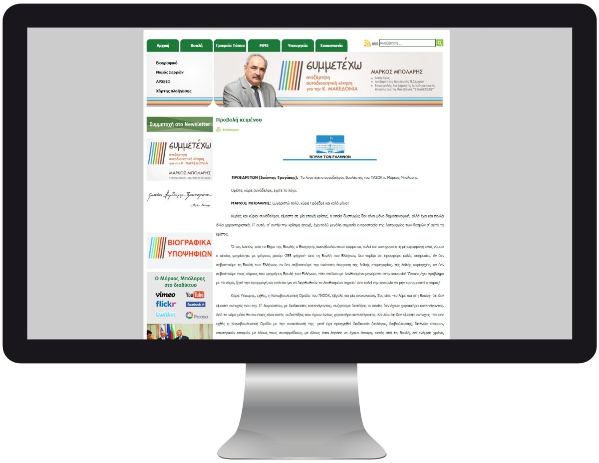 Κατασκευάσαμε την ιστοσελίδα του Βουλευτή Σερρών Μάρκου Μπόλαρη.