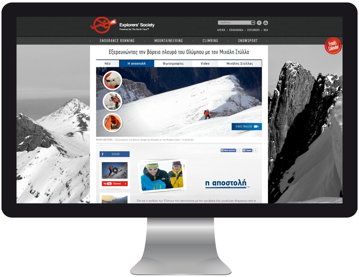Κατασκευάσαμε την responsive ιστοσελίδα των EXPLORERS SOCIETY, με σκοπό την άμεση και πλήρη ενημέρωση του κοινού που ενδιαφέρεται για τις δραστηριότητες στη φύση. Με κατηγοριοποίηση του περιεχομένου ανά δραστηριότητα, με ειδικές ενότητες νέων, ενημέρωσης, multimedia, βιογραφικών και εξοπλισμού καλύπτουμε πλήρως την κάθε δραστηριότητα που διοργανώνεται από την EXPLORERS SOCIETY.