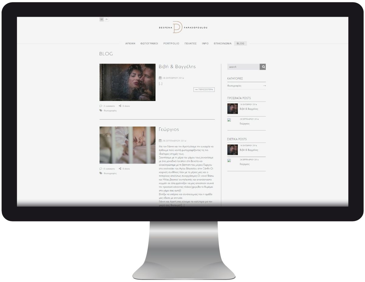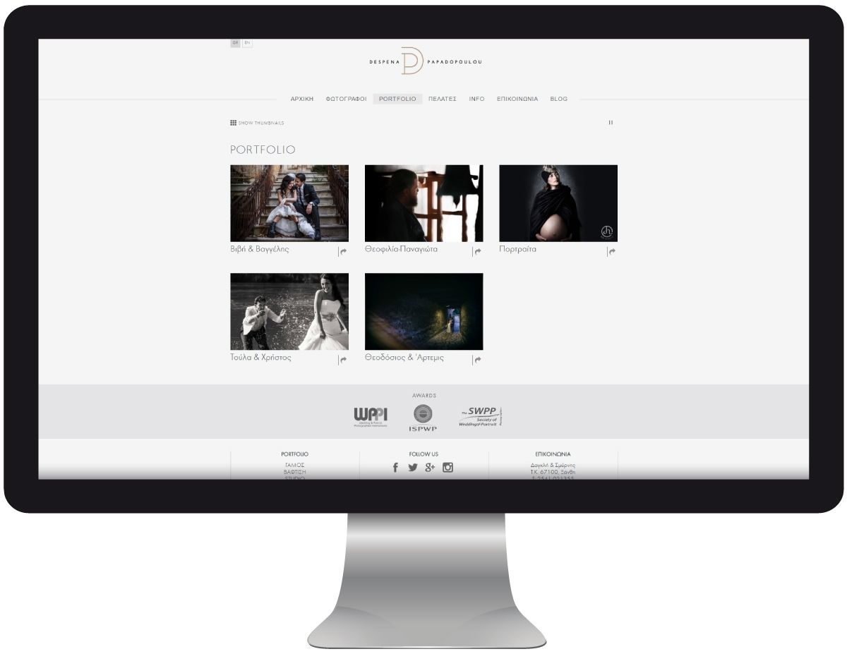 Μοναδικές φωτογραφίσεις, πορτραίτα, βραβεία, πληροφορίες όλα σε μία ιστοσελίδα που σχεδίασε και κατασκεύασε η εταιρεία μας με σκοπό να αναδείξει το υπέροχο έργο της φωτογράφου Δέσποινας Παπαδοπούλου