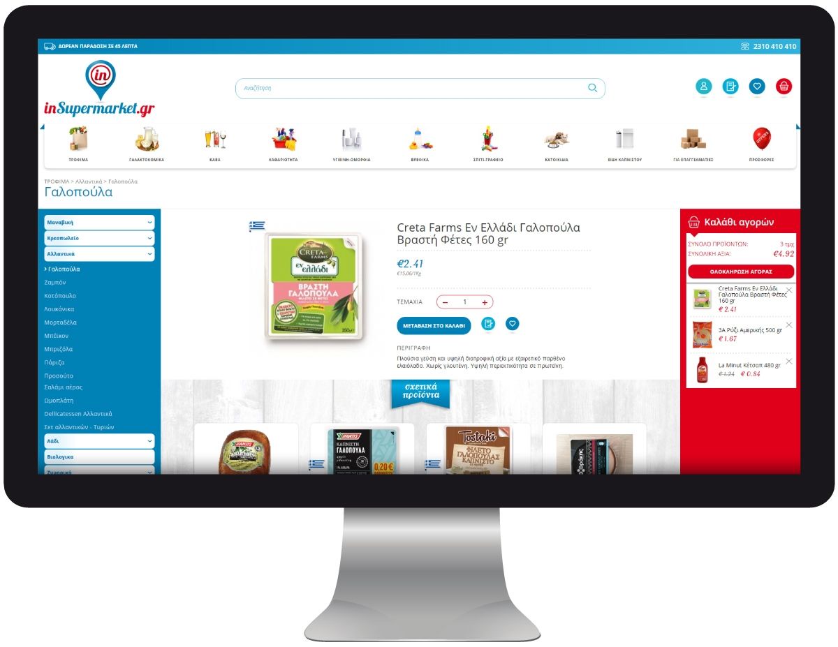 Χρησιμοποιώντας την πλατφόρμα της εταιρείας μας appwise ERP και appwise Marketing και τη διασύνδεσή τους με το ηλεκτρονικό κατάστημα insupermarket.gr καταφέραμε να ανταπεξέλθουμε στις ειδικές απαιτήσεις και να συνδυάσουμε τον απόλυτο έλεγχο της επιχείρησης με τη δημιουργία εξατομικευμένου και αποδοτικού marketing.